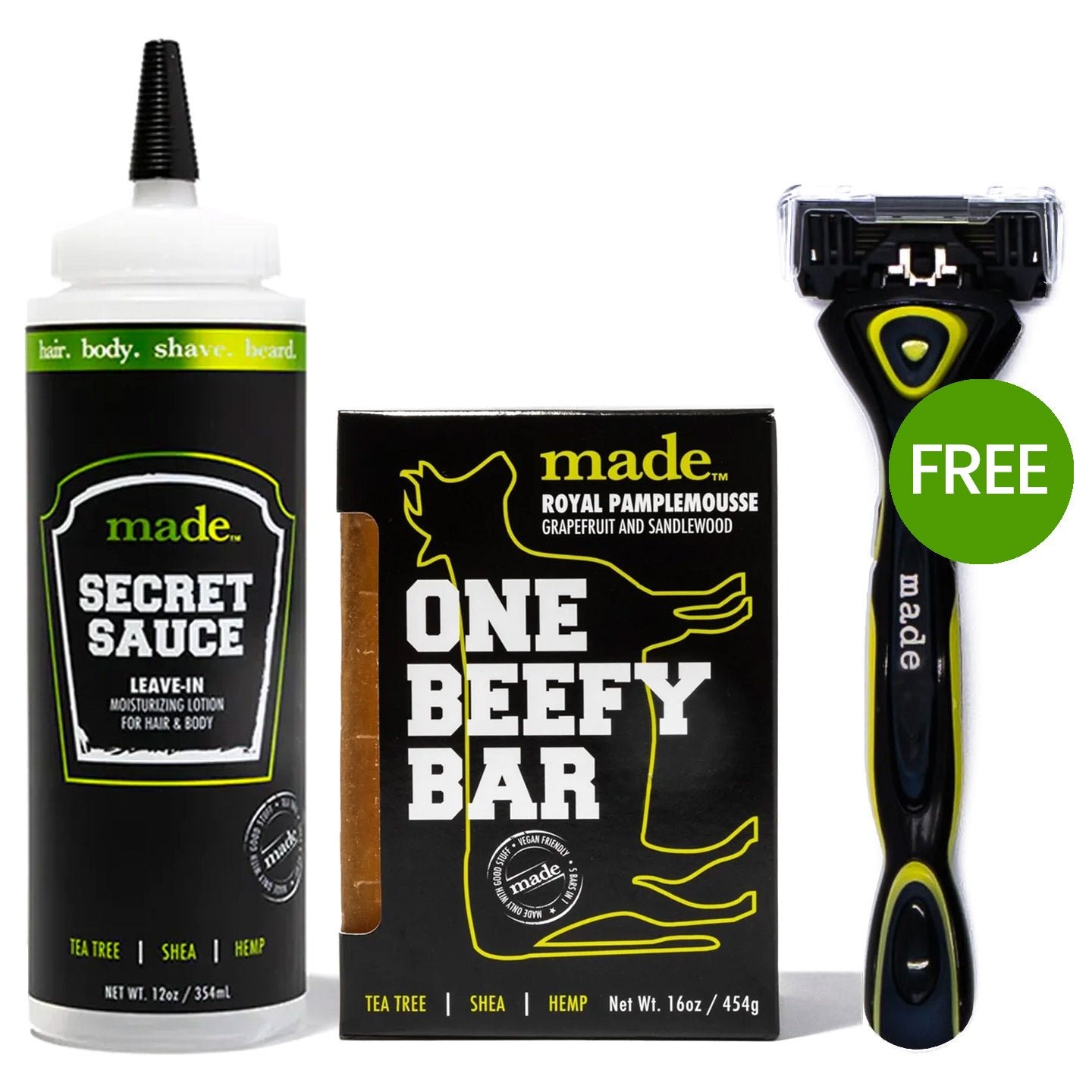 Our Meat and Potatoes power duo with the Secret Sauce + FREE 6 Blade Razor.